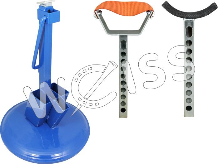 Beschlagbock WEISS `SCHEIBE` aus Metall, höhenverstellbar. Mit drei verschiedenen Einsätzen und magnetischer Sicherung am Verstellhebel.